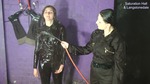 Rosemary, in a black boilersuit, and Maude, in tight black running trousers and jacket, hose each other down and wash each other's hair in the dungeon. They are wearing the somewhat damp clothes they travelled back from a mud scene in, beneath which they are wearing the same underclothes they wore in the mud. They thoroughly hose each other down, and then wash each other's hair, all while still in their now soaking wet clothes.