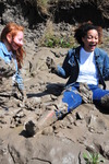 Take two lovely young women dressed in the American classic of blue jeans, plain white t-shirts, and blue denim jackets, add classic British wellington boots, and on a gloriously sunny day, send them into the mudbanks of finest Avon clay to completely cover themselves and each other in as much rich brown mud as possible!