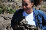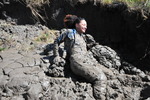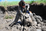 They wade in, fall over, sit down, roll around, and end up completely coated in mud, shrieking with laughter all the way through it. At one point they take turns to push each other over in the sloppiest bit, denim-clad bottoms sinking "splat!" into all-engulfing mud, at another point Friday throws handfuls of mud at Daphne, who deftly catches each one and then splats them on her own clothes.