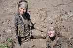 Two wonderful girls in classic outfits having a whale of a time getting totally covered in mud - muddy perfection!