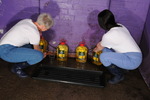 First they pour it into each other's jeans, so we can see as the oil beautifully floods through and soaks its way down, then they use a large tray on the floor to sit and lie in the oil while seeing to each other's t-shirts, and eventually giving each other a full oil hair and face treatment. Both girls end up totally drenched from head to toe in oil, and even then they go on pouring it over each other, making their oil soaked jeans really glisten as more and more is poured on.