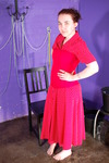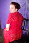 Red dress and red corset drenched in the dungeon