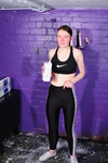 The lovely, willowy, Chastity, dressed in skin tight black and white spandex leggings and a Nike sports-bra top and wearing white sparkly plimsolls with no socks, completely drenches her outfit and shoes in litres of milk. She pours lots of milk into her leggings front and back, it leaks through the tight fabric and floods down her legs, she also pours milk inside the sports bra from where it flows down her skin and all over her leggings, and she also pours lots of milk all over the outside of her outfit and over her skin.