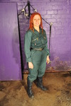 Rosemary hoses herself down, and then gets hosed some more by the photographer for some POV close-up views, and then finally has a full bucket of water thrown over her, all while dressed in the green boilersuit and blue wellies she wore to travel back from a mud scene in.