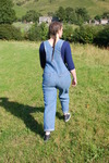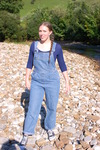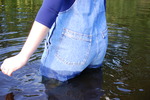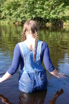 Purity takes a dip in the river in denim overalls