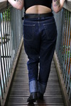 Dressed in black and pink swimsuit, boots, and blue jeans with large turn-ups, our security chief Kitty Kodena takes a very cold river bath on the estate in early Spring.