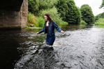 Chastity takes a fully-clothed dip by the old pack horse bridge
