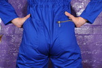 She starts with Devon Dream, pouring four full pots down inside the front of her suit - well technically thre and a half as she drinks a fair bit of the last one, it is very tasty. Gradually the wetness comes through in ever-growing stains as she pours more and more in, she wiggles and dances for the camera, and gives a running comentary of just where its reached and how it feels, rather enhjoying the sensations as it gathers in the crotch of the suit and then flows down both legs into ber boots, which begin to squelch slightly as she moves around.