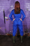 Having very impressed her ladyship with her first solo in a designer red dress, Lucia now tackles self-custardisation in something more traditional for our estate, a brand new blue boilersuit and green dunlop wellies.