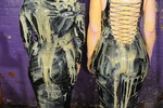 Though in a generous spirit, Fidelity, who's changed into a very nice skin tight spandex bodycon dress, and clean boots, is going to allow Chastity to give as good as she gets, so Fidelity is in for another drenching in goo, too.