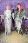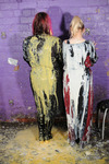 A playful scene in which both girls happily submit to each other and are gradually reduced to wet and slippery messes at each other's hands. There's lots of laughter, custard and cream thrown and poured over each other, dressed drenched in slop, some happy pieing each other in the face with amused laughter at the results, and oif course our trademark full messy hair shampooing.