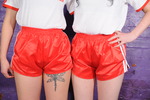 Maude and Honeysuckle in shiny red shorts mayhem