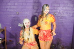 Both girls end up utterly drenched in mixed mess from head to toe, shorts engulfed, shirts soaked, shoes and socks totally messed, and their hair reduced to custard-soaked ruin.