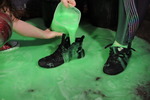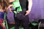 Dressed in skin tight yoga pants and running tops, worn over swimsuits, both girls are going to get utterly drenched in goo as they exercise, including very thorough pants filling, and total coverage everywhere else too.