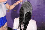 Their t-shirts get the treatment next, both get totally drenched in gunge and go slightly see-through to reveal the black bikini tops they are both wearing underneath them. And then of course they totally drench each other's hair and faces with all the remaining gunge, including emptying half-buckets of the clear slime over each other.