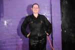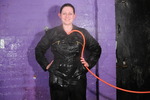 Rosemary gets hosed down and washes her hair in a black boilersuit