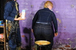 Taking turn and turn about, they gradually reduce each other to mess-drenched messes, with clothes filling, pocket filling, liberal slathering, and finally full head coverage too.