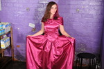 Maude and Lucia, dressed in gorgeous formal gowns, have met up in the dungeon. Both are barefoot, and Lucia has accidentally let the hem of her dress trail in a pool of water on the floor. So clearly there is nothing for it than that they need to give each other very thorough custard shampoos, with their dresses still on of course. Needless to say, they are both about to get very messy indeed!