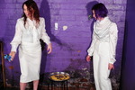 Imagine, three of our people, all dressed in gleaminmg white outfits, in the dungeon together, with a delicious supply of sweet mess to hand, but they've been told they all have to stay spotlessly clean for the grand reception in the house later today. And then Friday can't remember if she shut the great hall doors or not so nips back upstairs to check. Do you think the other two might be tempted to prepare a tray with custard and chocolate sauce? And do you think that Friday, on her return, might just happily sit down without checking, and suddenly find the seat of her spotless white trousers engulfed in gloopy creamy mess?