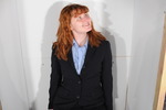 - She takes her jacket, messy inside but clean outside, from the seat and puts it back on.