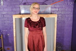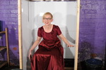 Aurora has spent the afternoon at one of Lady Jasmine's famous summer garden parties, and is dressed for the occasion in a beautiful deep red formal gown and strappy high heeled shoes. And yet somehow, through it all, she managed to remain completely dry. Which will never do. So she's brought herself down to the dungeon, still wearing all her finery, to give herself a proper messy seeing to.