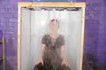 Once the tank has emptied, the valve is reset yet again and while it refills with water, she drenches her dress and hair in shampoo, working up a real lather before unleashing yet another unstoppable deluge cascade over herself and her soaking wet dress.