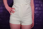 Miss Abigail's cute pinstripe suit is the first to feel the gunge, pink and blue happily poured in at the cleavage and soon nicve and visible as it collects below the waistline and soaks through from within. And then it's Maude's turn and her pretty patterned white suit also starts to drip and leak as it's well filled with gunge.
