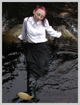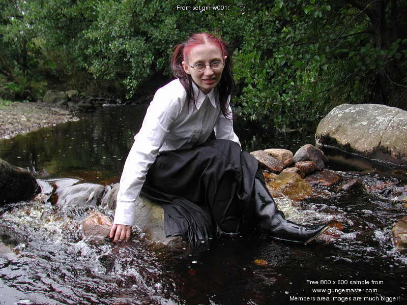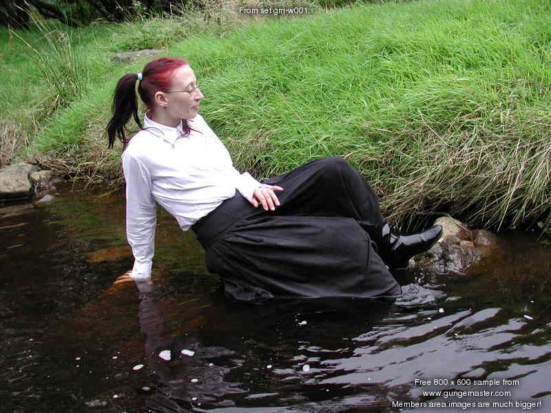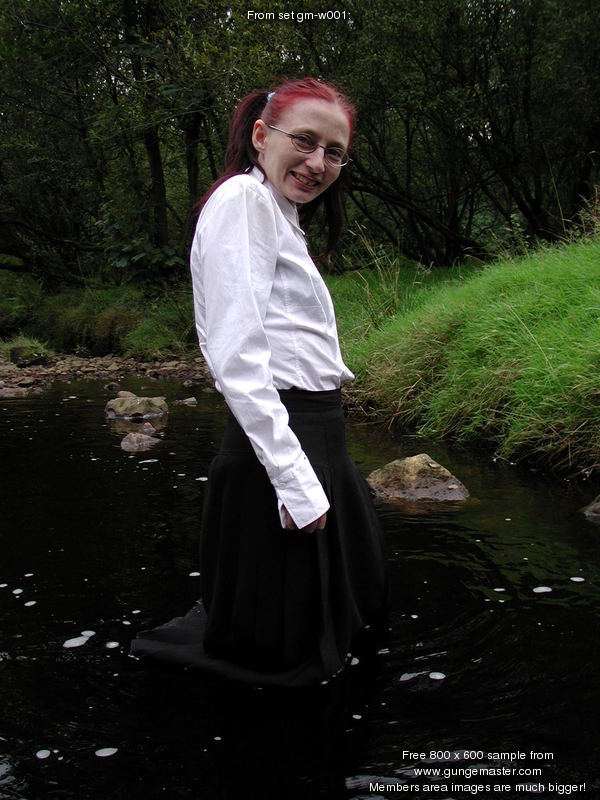 Note: For a variety of reasons this set runs to just 162 images, plus we goofed a little with the lighting - a dark skirt and brilliant white shirt are not the best choices to go with dark water and a bright backdrop, and some of the shots are not quite as sharp as we'd like. As Schoolmistress Jasmine would say, "must try harder"!