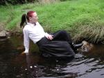 Lady Jasmine has a paddle, wearing her top quality riding boots, with a long black skirt just designed for swishing in the water. Having soaked herself thoroughly (though her skirt proved to be surprisingly water-resistant, a proper mud or gunge bath awaits it as a result!), she then takes a wander through the trees, reliving her childhood in the parkland around the manor.
