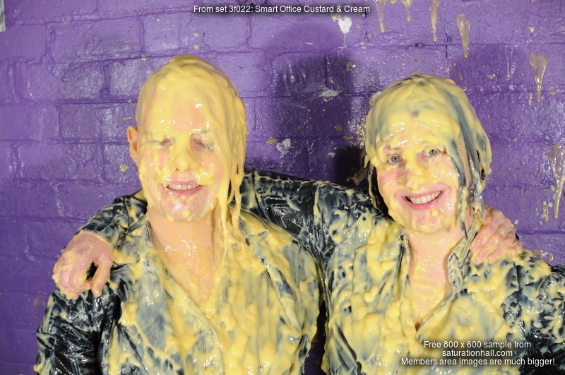 Needless to say, both girls get utterly drenched in cream and custard from head to toe!