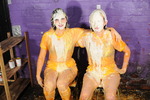 What follows is a lovely little session in which they both fill each other's outfits with cream and custard, before indulging in some fairly hard-impact flannage, really slamming some paper bowl custyard pies into each other's faces, butts, and elsewhere too.