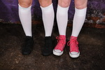Dressed in identical red shiny satin sports shorts, matching red and white Adidas t-shirts, with knee-high whits sports socks, and Converse-style basketball boots, Maude and Honeysuckle are going to put each other to the mixed mess test!