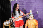 Miss Abigail and Fidelity fill each other's festival outfits with food