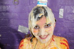 And now it's pie time! The challenge is only whose Devon Dream leaks first, so in the mean time, they are free to thoroughly pie each other, which they do with merry abandon, full force pieings straight in the face, with splatter going everywhere.