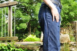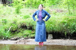 Chastity, our head gardener, and also a specialist (and very hands on specialist) in water gardening, wanted to dress appropriately for such illustrious company, but also in keeping with her role. And in something she'd enjoy getting wet in. Denim was the obvious answer, but instead of her regular working overalls, this time she opted for a floor length blue denim skirt, with purple t-shirt and blue denim jacket, and finished the outfit off with Union Jack wellington boots.