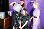 Well, in our dungeon at least, three soaking wet nurses is what happens! Morgana, Chastity, and Charlotte, have a merry old time taking turns to be giver of the buckets, and receivers of the wetness, until all three are utterly drenched.