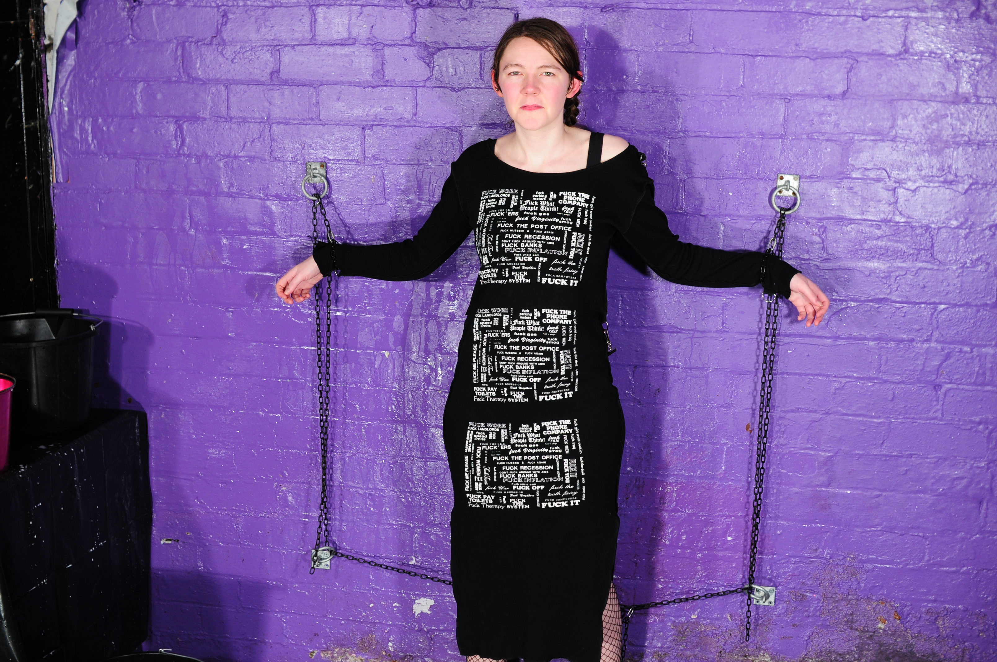 Chastity, when not waist deep in the water gardens in her favourite dungarees, is actually rather partial to quite a few kinks. Which is how she comes to be chained to the dungeon wall, wearing a "Fuck Everything" designer dress by Omen, fishnet tights, and leather ankle boots, about to receive a rather extreme milking and drenching!