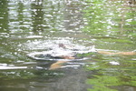 Eventually she wades, soaking wet, back out of the water, and poses, dripping, on the bank.