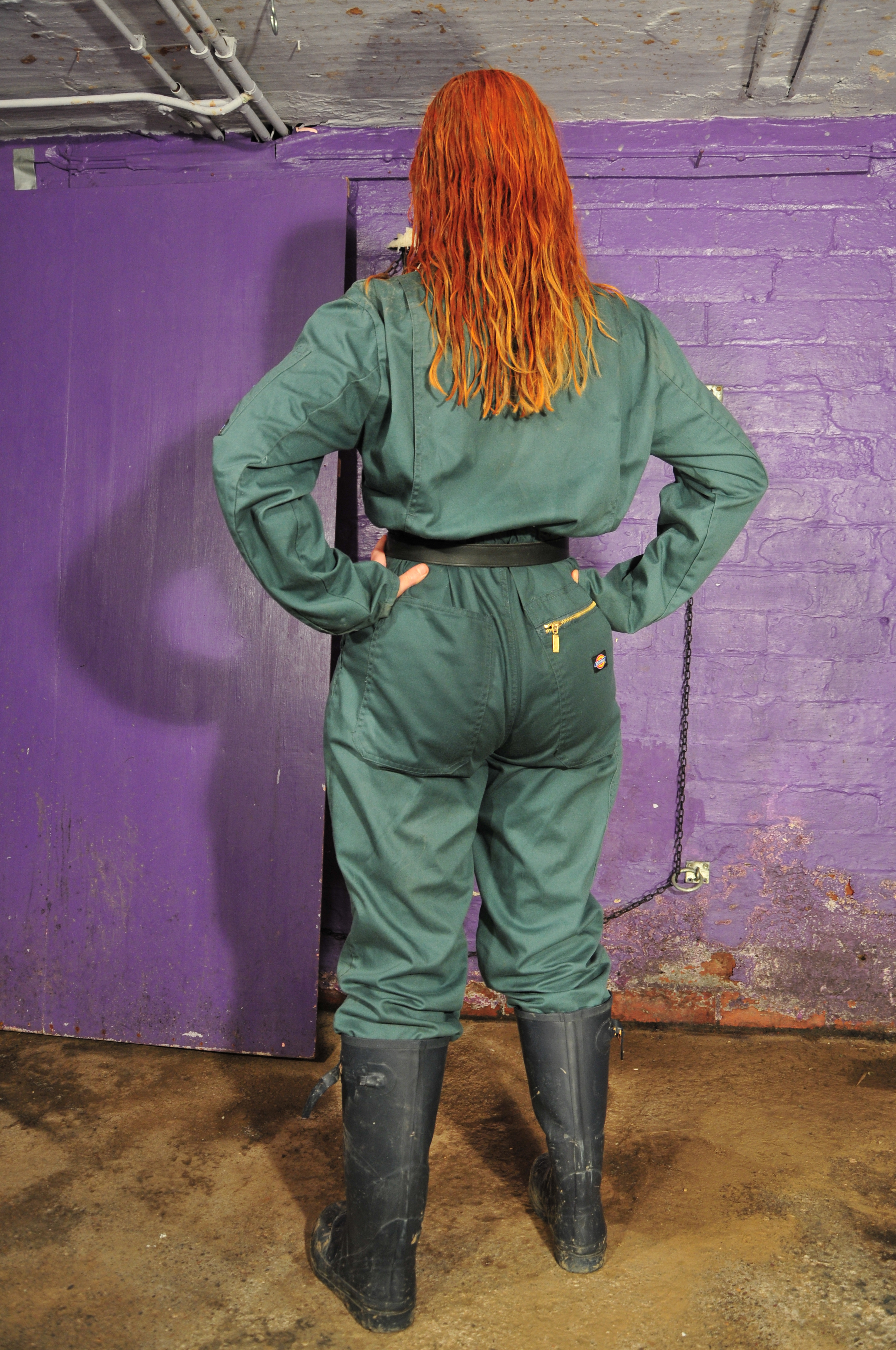 Lady Amaranth self-drenches in her boilersuit and wellies