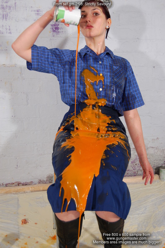 Here at Saturation Hall it is regarded as very important that all members of the household regularly gunge test their working clothes, just to be sure. There's nothing quite like the morale boost that comes from knowing, from detailed personal experience, just exactly how your skirt will perform when faced with a deluge of gooey mess.