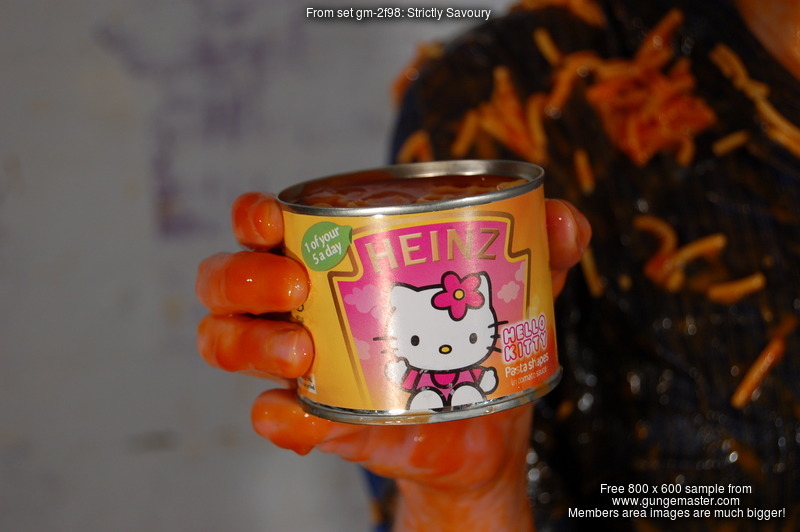 And then the spaghetti is added to the mix, great dollops of it poured all over Maude's outfit, and shampooed into her lovely hair.