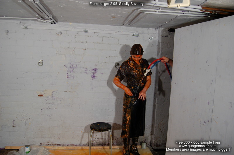 Technical: With this scene you get three videos, the main messy scene, then Maude, fully dressed and covered in gunge, sitting on a stool and being deluged by buckets of water, and the finally the fully clothed hosedown. All videos have full original sound. There is also a high resolution photoset of the main gunging.