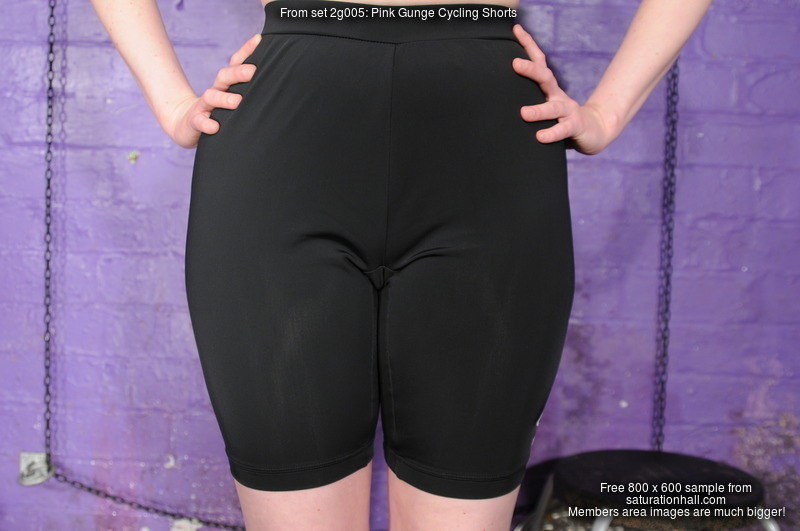 Dressed in just tight lycra running/cycling shorts and a Nike sports-bra top, and with no underwear, Rosemary first goes through a series of exercises designed to really show off her rather sexy workout clothes, and then she adds bright pink gunge to her routine. Feeling that her shorts are alltogether too dry against her skin, she pours pink gunge down inside he front, sighing with pleasure as the gloop flows down between her skin and the lycra. Loving the feelings as the wetness spreads, she wastes no time in pouring lots more gunge in while continuing to bend and stretch, and soon her shorts are utterly drenched in bright pink slime.