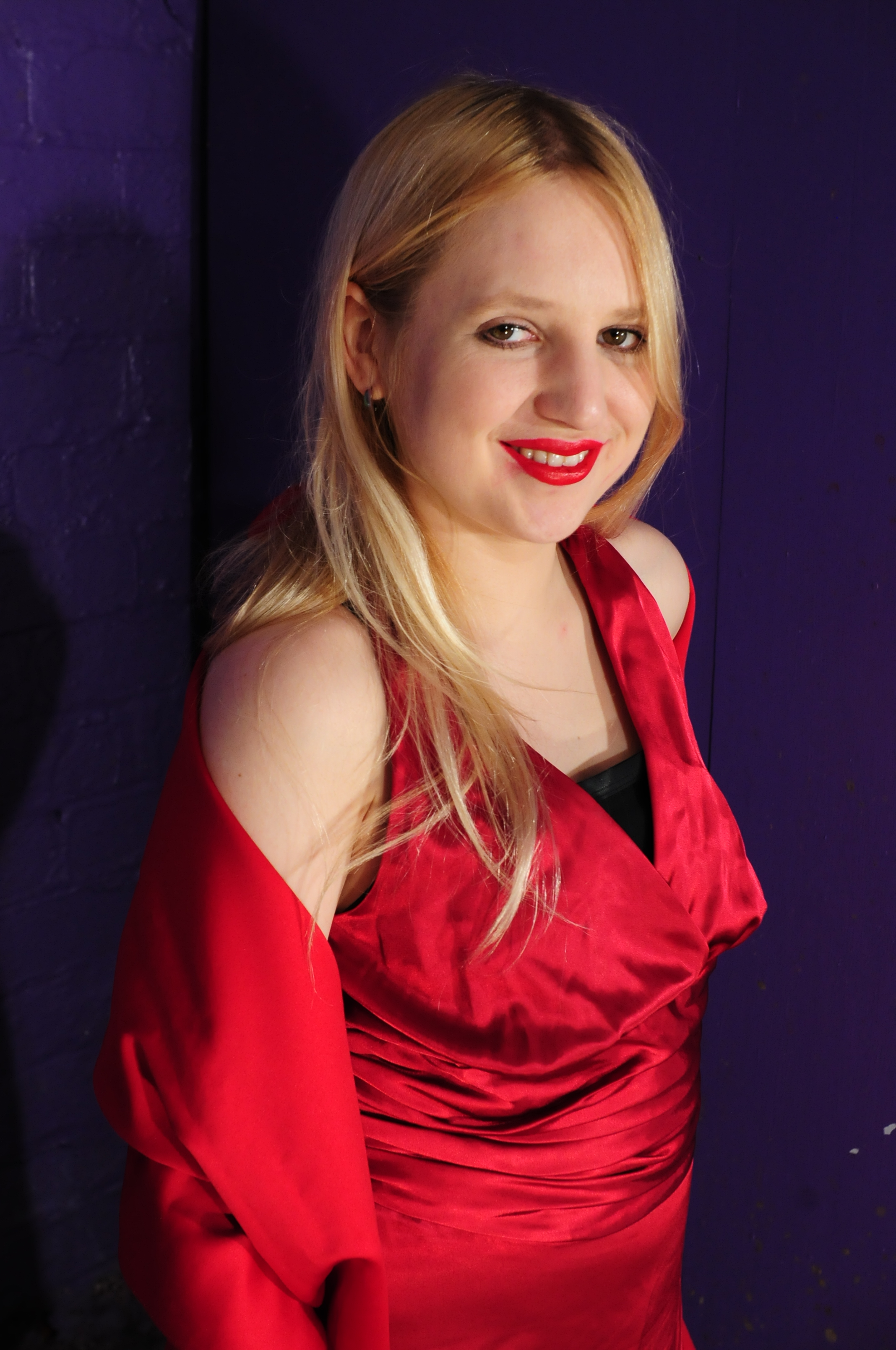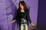 Maude dons a pair of forest green American Apparel disco pants over a mid-sleeve black spandex dance leotard, and adds transparent ankle boots and a thin shiny black jacket to complete the ensemble. And then she gives herself a really, really thorough gunging!