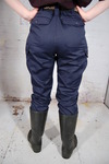 Her trousers are now wet but not so messy inside, so now she has the waistband of her trousers pulled out, allowing all the mixed mess trapped round her waist to drop down into her wet trouser legs. After that it's pie-sitting time, and squelch! - down she goes into a nice gooey concoction.