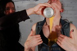 To finish off, Chastity gets a fresh drenching with lemonade, and then gets hosed down.