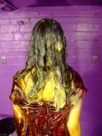 And then she pours a full can of syrup over her beautiful soft long hair, coating it in rich golden shimmer.