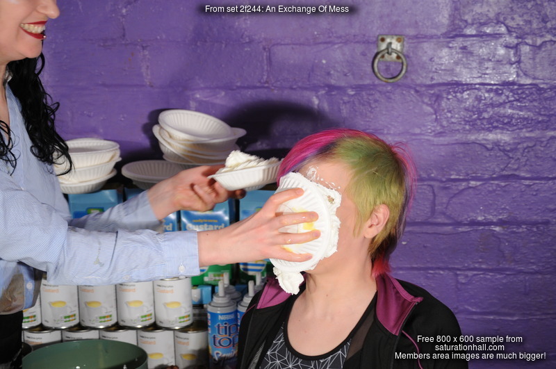This was a custom scene for a customer who really likes our hair gungings - almost all of our scenes have the girls shampooing mess into their hair, which is probably something we should promote more - and the customer specified that after messing each other's clothes up in the intro, the main part of the scene should involve lots of pies in the face, and smeared up onto their heads and into their hair. They also specified that one of the girls should receive a supprise extra pie in the face after she'd been hosed down, which we did (and the girls were happy to do). Watch the videos to see who got some extra pie!