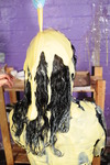 To finish, theyh give each other full head dunkings in buckets of porridge, and then Penny pours a bucket of porridge over Honeysuckle's head while she's bent over the bucket she just dunked in. They also empty the contents of their wellies over each other. This was the first time Honeysuckle had ever done a head dunking, and she quite enjoyed it!