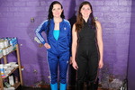 Honeysuckle wears a beautiful classic royal blue Adidas track suit, over a turquoise swimsuit, and with wellies that match her swimsuit. Maude wears a sleeveless Nike sports catsuit over a black swimsuit, with sparkly wellies.